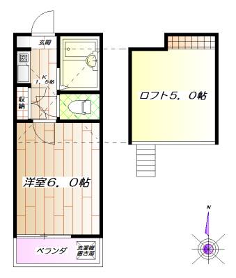| 間取内容 | 洋室6畳1室 K1.5畳1室 |