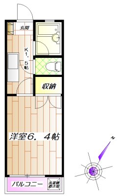 | 間取内容 | 洋室6.4畳1室 K1.5畳1室 |