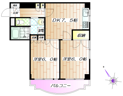 | 間取内容 | 洋室6畳1室 洋室6畳1室 DK7.5畳1室 |