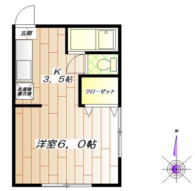 間取内容 洋室6畳1室  K3.5畳1室