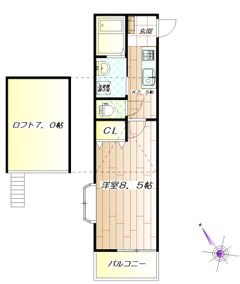 | 間取内容 | 洋室8.5畳1室 K2.5畳1室 * |